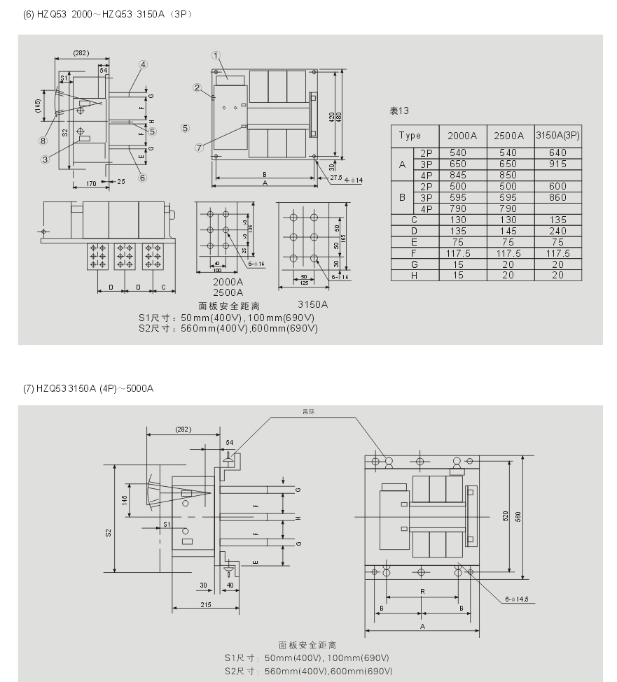 5¡¢The switches below 500A should be generally connected in front and the switches above 630A should be connected at back. The others belongs be special supply.
