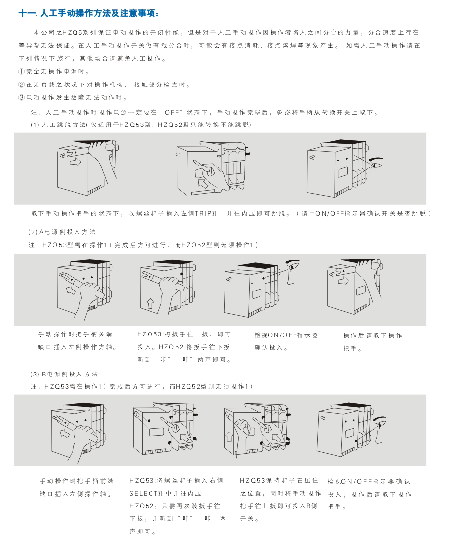 1¡¢HZQ52 is two-step automatic transfer switch. When receiving the change-over signal, the switch won¡¯t stop in the middle splitting point and transfer rapidly from one power to another power and its ampere rating is only 20A-500A.