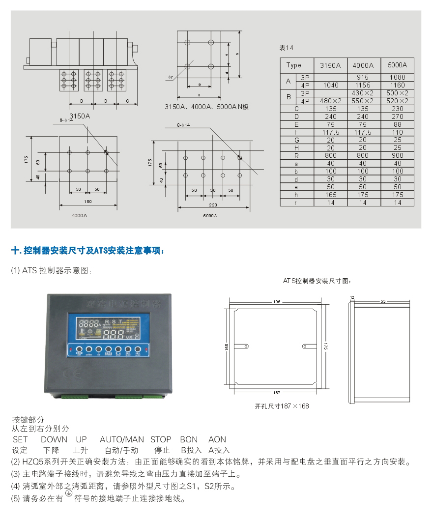 (6) Installation condition: electrical switches and transfer controller can be installed vertically or horizontally in specified control cabinet and distributor cabinet.