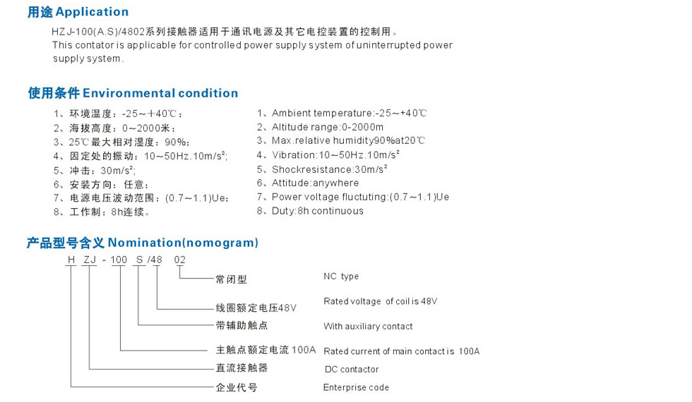 HZJ-100A/S-4802直流接觸器